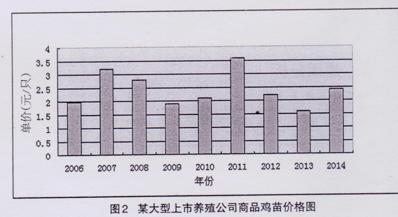 由連續(xù)統(tǒng)計9年的商品雞苗價格柱形圖可以很直觀看出,全年平均價格超過3元/只的有2年。2.5元/只左右的有2年,2元/只左右的有4年,1.5元/只的1年,由此可見,只要全年產(chǎn)苗平均,對于價格風(fēng)險還是有一定的抵抗能力,這也是大公司的優(yōu)勢。