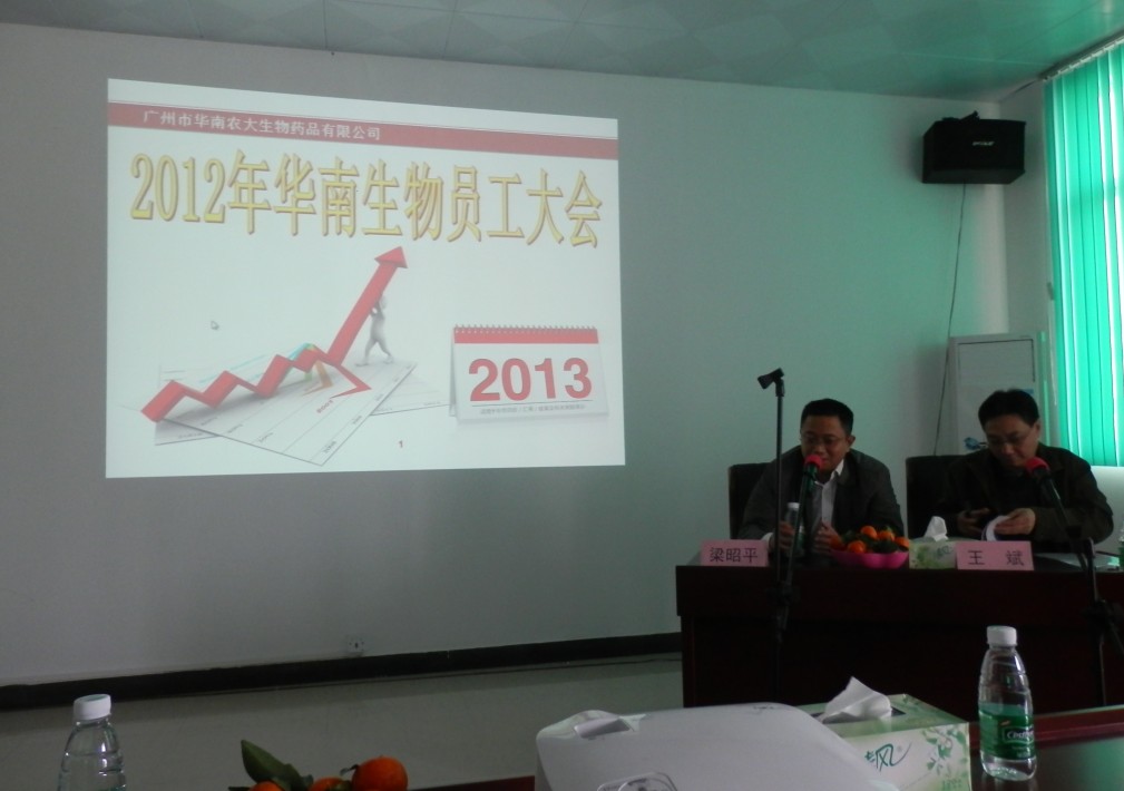 1月24日,華南生物2012年員工大會(huì)在辦公樓一樓會(huì)議室順利召開。王斌副總經(jīng)理主持了本次會(huì)議,梁昭平總經(jīng)理在會(huì)議上匯報(bào)了2012年度公司的經(jīng)營(yíng)情況、主要亮點(diǎn)工作及主要完成工作內(nèi)容。梁總在現(xiàn)場(chǎng)講話中,感謝全體員工一年來對(duì)公司所做出的積極付出,充分肯定了華南生物員工在2012年里所取得的優(yōu)異成績(jī),并為企業(yè)描繪發(fā)展藍(lán)圖,鼓勵(lì)大家共同努力,取得新的輝煌。在肯定上一年度工作成績(jī)的同時(shí),提出了企業(yè)在發(fā)展上存在的問題與改進(jìn)辦法,展望未來一年的方向和目標(biāo),對(duì)新一年寄予了熱切的期盼。