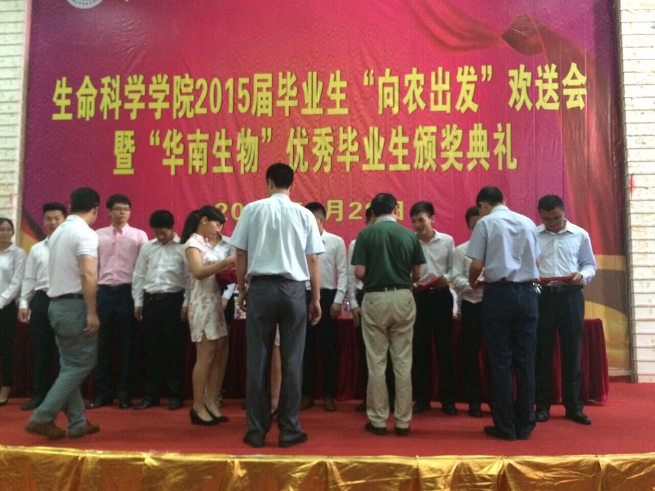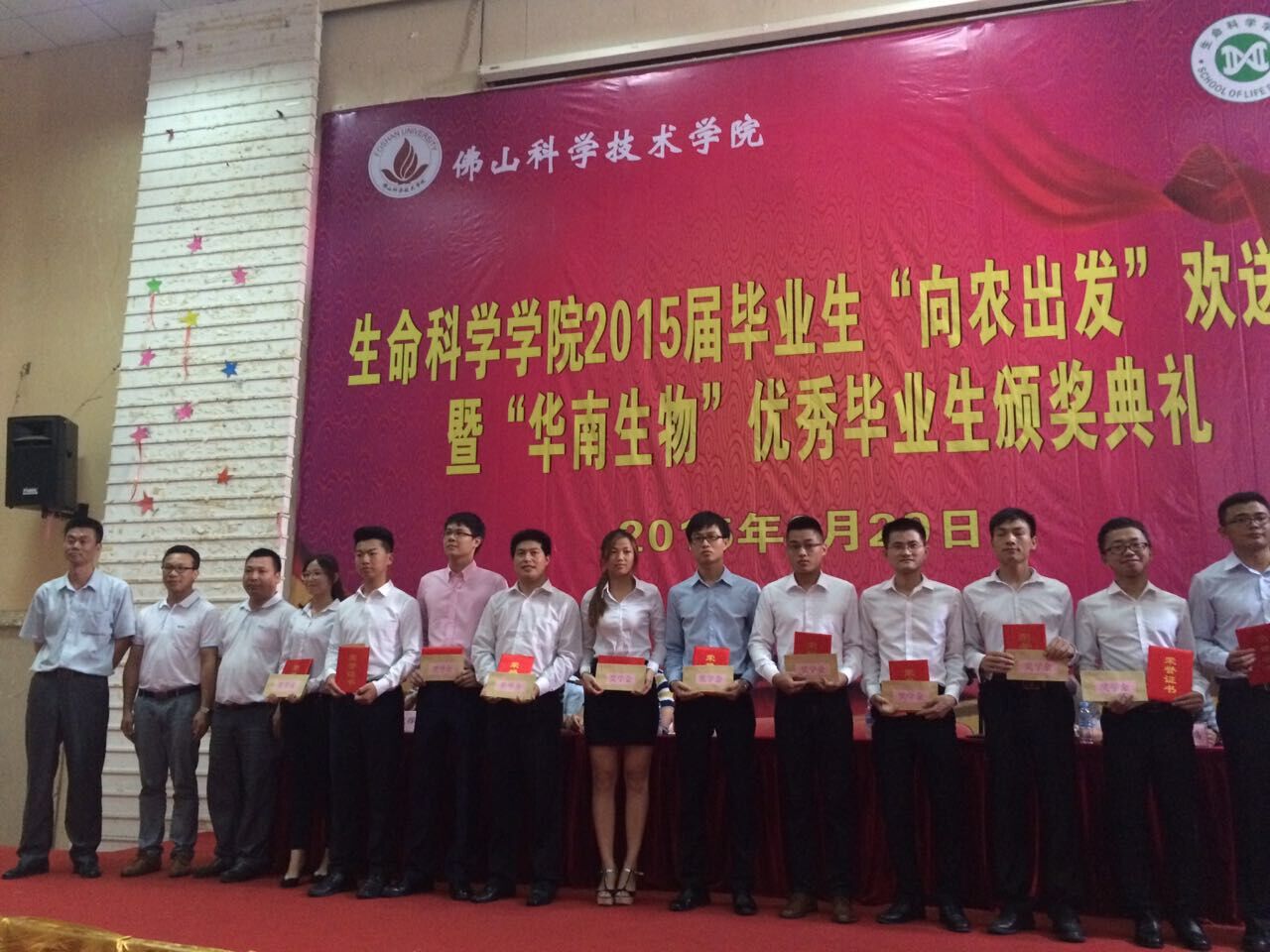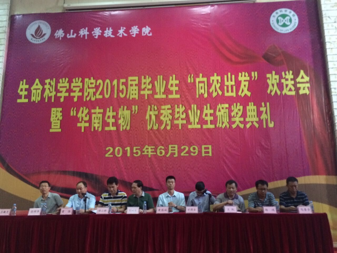 2015年6月29日下午佛山科學(xué)技術(shù)學(xué)院生命科學(xué)學(xué)院2015屆畢業(yè)生“向農(nóng)出發(fā)”歡送會(huì)暨“華南生物”優(yōu)秀畢業(yè)生頒獎(jiǎng)典禮在北院圖書館一樓報(bào)告廳舉行。佛山科學(xué)技術(shù)學(xué)院生命科學(xué)學(xué)院院長王炳云、書記甘蔭全等學(xué)院領(lǐng)導(dǎo)、廣州市華南農(nóng)大生物藥品有限公司副總經(jīng)理黃國城、班主任、嘉賓、全體畢業(yè)生出席并參加了畢業(yè)生頒獎(jiǎng)典禮。