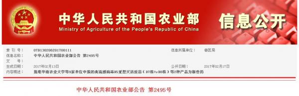 信息來源:中華人民共和國農(nóng)業(yè)部公告 第2495號(hào)