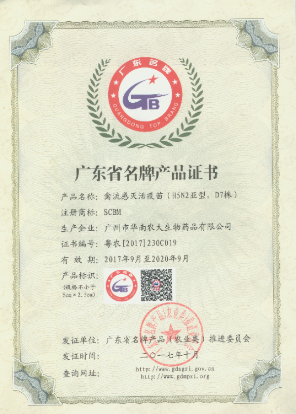 為貫徹落實(shí)廣東省委、省政府關(guān)于實(shí)施名牌帶動(dòng)戰(zhàn)略的重要部署,不斷提高廣東省農(nóng)產(chǎn)品質(zhì)量和市場(chǎng)競(jìng)爭(zhēng)力,根據(jù)《廣東省名牌帶動(dòng)戰(zhàn)略實(shí)施方案》和《廣東省名牌產(chǎn)品(農(nóng)業(yè)類(lèi))管理辦法》,經(jīng)廣東省南方名牌農(nóng)產(chǎn)品推進(jìn)中心組織專(zhuān)家評(píng)審和廣東省名牌產(chǎn)品(農(nóng)業(yè)類(lèi))推進(jìn)委員會(huì)審核,廣州市華南農(nóng)大生物藥品有限公司產(chǎn)品獲得“廣東省名牌產(chǎn)品”稱(chēng)號(hào),此次共評(píng)出2017年廣東省名牌產(chǎn)品(農(nóng)業(yè)類(lèi))453個(gè),其中初評(píng)產(chǎn)品212個(gè),到期復(fù)審產(chǎn)品241個(gè)。