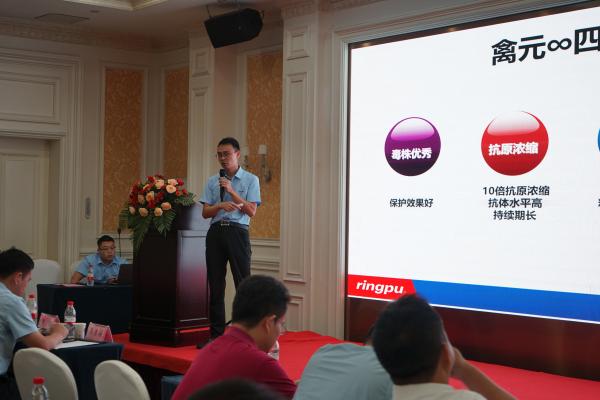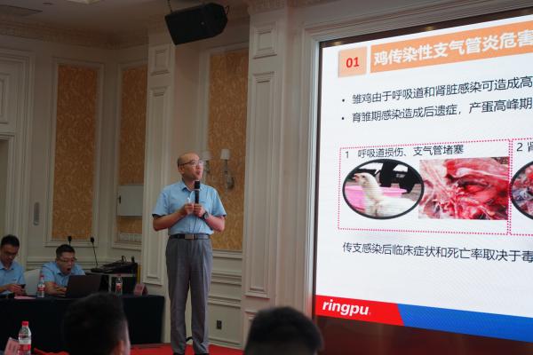 瑞普生物產(chǎn)品線副總裁尤永君做“家禽常見疫病的流行動態(tài)及防控策略”主題報告。尤總對當前危害家禽業(yè)比較重大的疾病如傳染性支氣管炎、傳染性鼻炎、傳染性貧血、支原體、禽流感等進行了詳細的介紹,并有針對性的提出了防控建議,對大家科學養(yǎng)殖提供了參考。