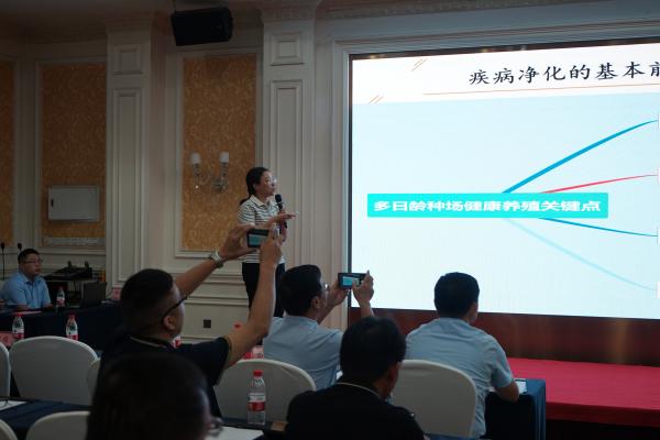 華南生物技術(shù)行銷總監(jiān)助理郝建勇做“禽元產(chǎn)品優(yōu)勢介紹及TCO分析”主題報告,郝總介紹了華南生物禽元的特點和優(yōu)勢以及與其他廠家疫苗的不同之處,最后對禽元產(chǎn)品在臨床應用方面的數(shù)據(jù)進行了分享,給客戶堅定了使用信心。