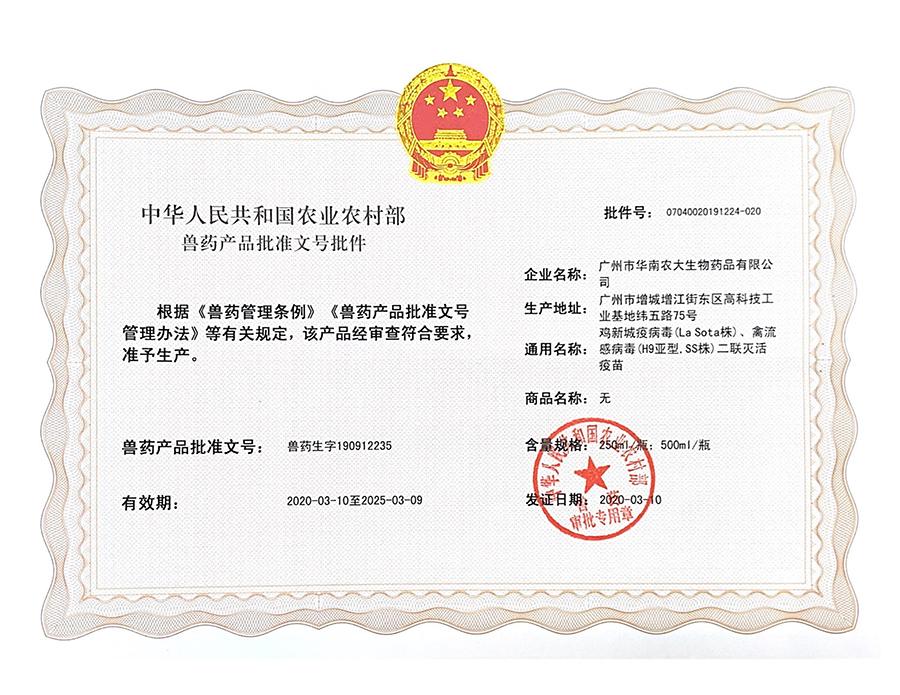 獸藥生產(chǎn)許可證:(2022)獸藥生產(chǎn)證字19091字