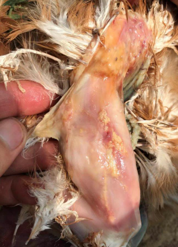 腿肌注射后容易損傷坐骨神經(jīng),嚴(yán)重的會出現(xiàn)癱瘓;另外,消毒不嚴(yán)格可能引起注射部位感染,部分雞出現(xiàn)癱瘓。
