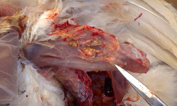 2、注射部位不當或者由于再注射過程中針尖刺到骨頭導致針尖帶鉤,導致注射部位出現(xiàn)嚴重的組織反應,并對禽群造成進一步的傷害 。