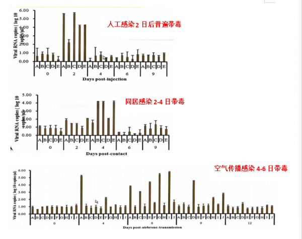 1.2通過隔離器進(jìn)行人工感染后的同居感染試驗(yàn)和空氣傳播感染試驗(yàn),結(jié)果表明病毒可以通過接觸傳播和空氣傳播!