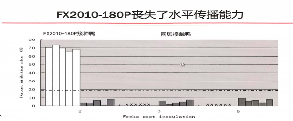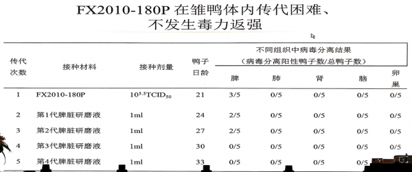 疫苗毒通過傳代致弱,無致病性。免疫后同居鴨群未受感染,且無法在體內(nèi)傳代。說明其無水平傳播能力,無毒力返強(qiáng)風(fēng)險(xiǎn)。