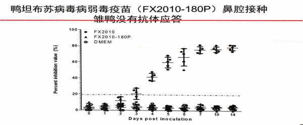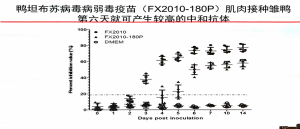 疫苗無法通過黏膜免疫產(chǎn)生有效的免疫應(yīng)答,只能通過肌肉注射的方式,免疫后4-6天能夠產(chǎn)生中和抗體,但應(yīng)該考慮過早免疫,雛鴨母源抗體的影響,同時(shí)也應(yīng)該考慮免疫后抗體持續(xù)期能否保護(hù)至出欄,所以應(yīng)該進(jìn)行科學(xué)的抗體監(jiān)測來制定合理的免疫方案。