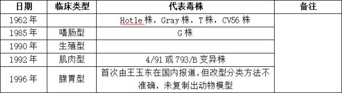 雞傳染性支氣管炎是一種廣泛存在的對家禽業(yè)造成巨大經(jīng)濟(jì)影響的家禽疾病。不斷出現(xiàn)的新的IBV基因型及不同基因型之間缺少交叉保護(hù)已經(jīng)成為防控IBV的重要挑戰(zhàn)。IBV致病型(臨床型)與IBV毒株血清型/基因型之間并無必然的聯(lián)系,不同血清型或基因型毒株可能屬于相同致病型。同時,屬于同一血清型或基因型的IBV毒株可能屬于不同致病型?,F(xiàn)就雞傳染性支氣管炎病毒臨床分型和代表毒株說明如下: