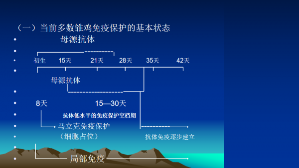 1. 母源抗體是長期自然進化中母體為下一代雛雞提供針對性很強的主要抗病能力。