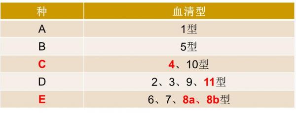 根據(jù)限制性內(nèi)切酶消化不同,FAdV-Ⅰ分為A、B、C、D、E 5個種。根據(jù)血清交叉中和試驗,可分為12個血清型。A對應(yīng)的血清1型,B對應(yīng)的血清5型,等等。血清型8b和11型之間有一定的交叉保護性,但大部分血清型之間幾乎無交叉保護性。FAdV-Ⅰ主要在禽類呼吸道和消化道上皮細胞內(nèi)復(fù)制,形成包涵體。C4型引起禽HPS;各血清型都能引起IBH,但主要是血清8a、8b和11型;A1、8a和8b型能引起禽肌胃糜爛。